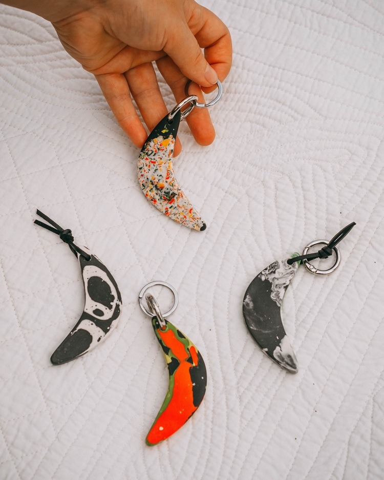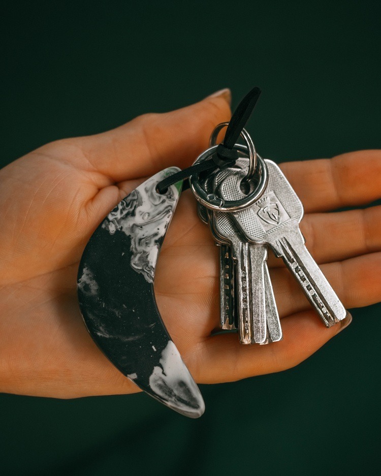 Однією з ключових переваг брелоків-бумерангів є використання високоякісних та екологічних матеріалів: Jesmonite або Acrylic One. Ці акрилові композити є двокомпонентними матеріалами, що активно застосовуються в будівництві, архітектурі та дизайні завдяки своїм винятковим властивостям. Вони відрізняються високою міцністю, яка з часом лише збільшується, що гарантує довговічність виробів. При цьому, Jesmonite та Acrylic One значно легші та універсальніші за натуральний камінь, що робить брелоки зручними у використанні. Важливо відзначити, що ці матеріали є екологічними та гіпоалергенними, що робить їх безпечними для здоров’я.