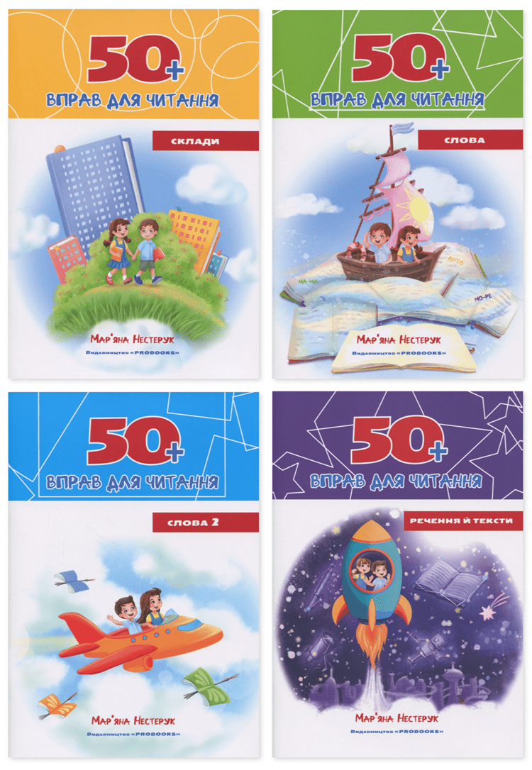 Цю книгу можна придбати на сайті видавництва «PROBOOKS»: https://www.yakaboo.ua/ua/komplekt-z-4-zoshitiv-50-vprav-dlja-chitannja.html